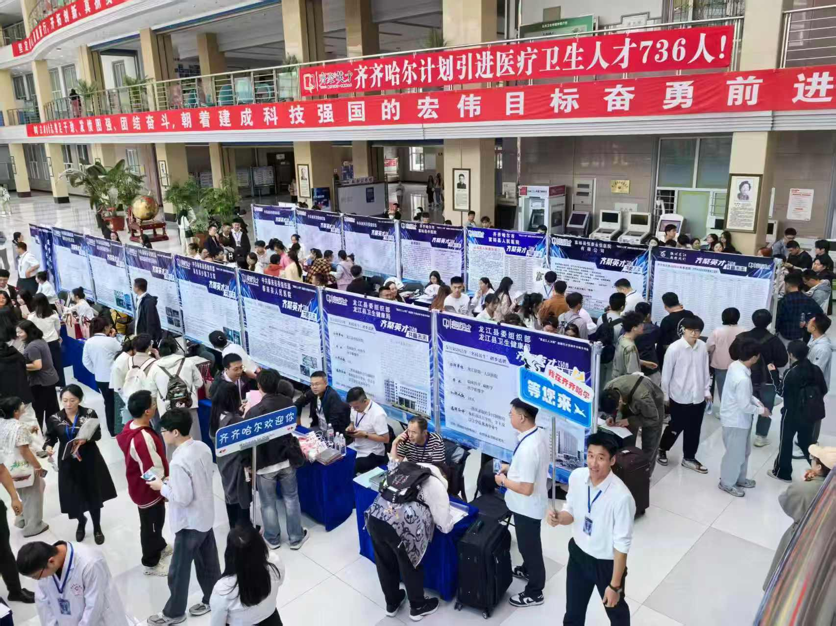 9月17日,2025年度“黑龙江人才周”校园引才活动齐齐哈尔市医疗卫生专场招聘会在哈尔滨医科大学举行。齐齐哈尔市委组织部、市卫健委、齐齐哈尔医学院及其附属医院、齐齐哈尔市第一医院、齐齐哈尔市中医医院、齐齐哈尔建华医院、各县(市)区及域内医疗机构参加活动。