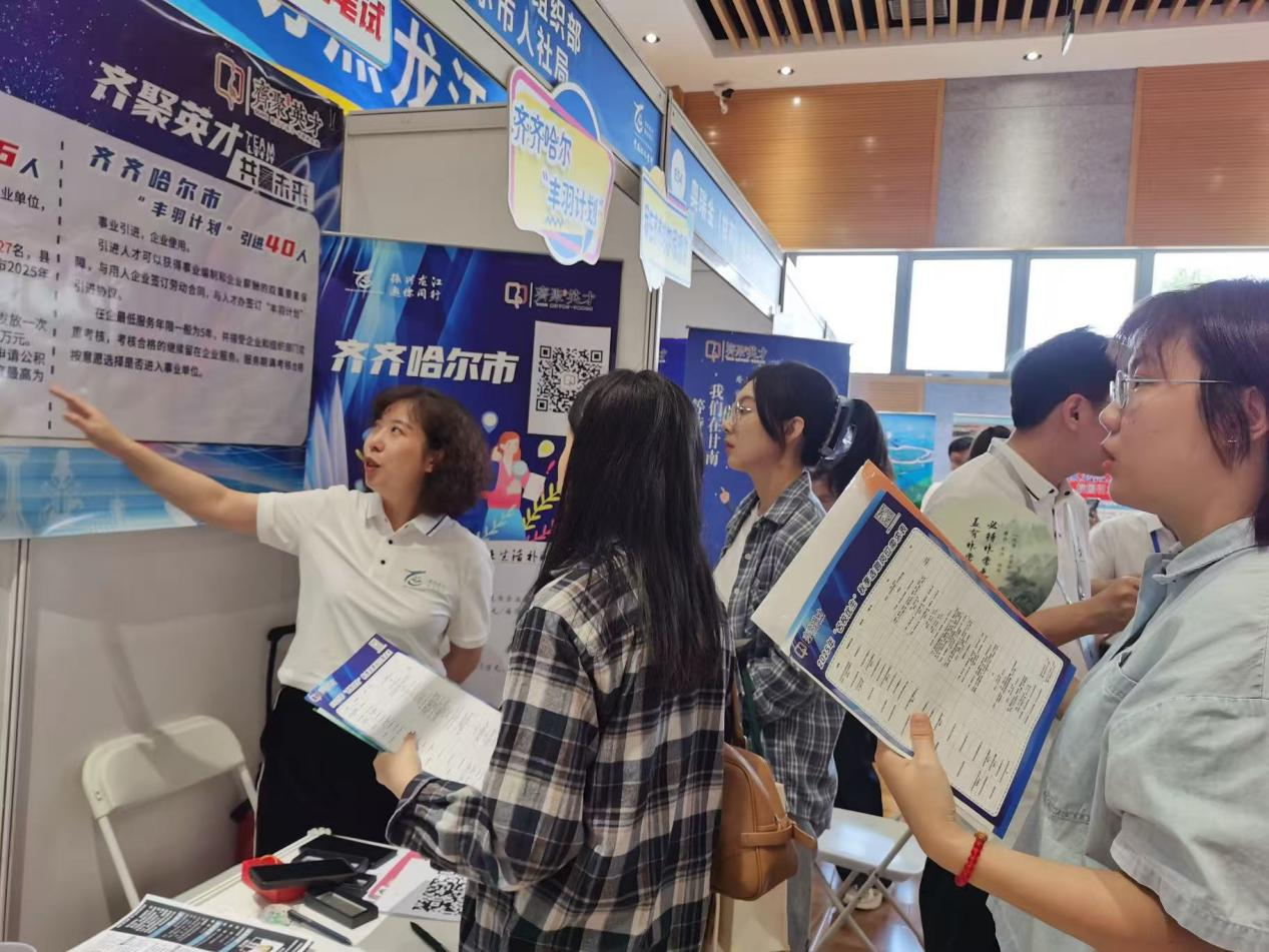 9月19日,2025年度“黑龙江人才周”校园引才活动在清华大学、中国农业大学举办。齐齐哈尔市委组织部、市人社局、讷河市、甘南县、铁锋区及齐齐哈尔四达铁路设备有限责任公司、奥瑞金(甘南)包装有限公司、黑龙江省讷粮网络科技有限公司等域内重点企业参加活动。