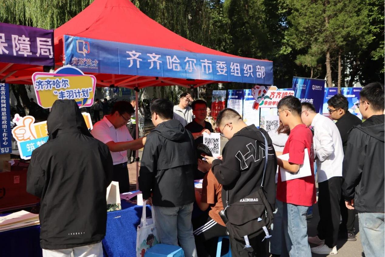 招聘会现场气氛热烈,源于齐齐哈尔市与燕山大学血脉相连的历史纽带、城市产业发展与学校优势专业高度匹配的现实联系,用人单位与求职学生热情高涨,尤其是国企、民企展位前围满了求职的学子。工作人员“一对一”推荐岗位,“点对点”指导报名,“名校优生”和“丰羽计划”引才品牌的强劲吸引力,吸引广大学子纷纷驻足咨询。齐齐哈尔带来的事业编制、技术研发、经营管理等优质就业岗位和生活补贴、创业补贴、住房保障等各项政策,让同学们感受到鹤城求贤若渴、尊才爱才的态度。