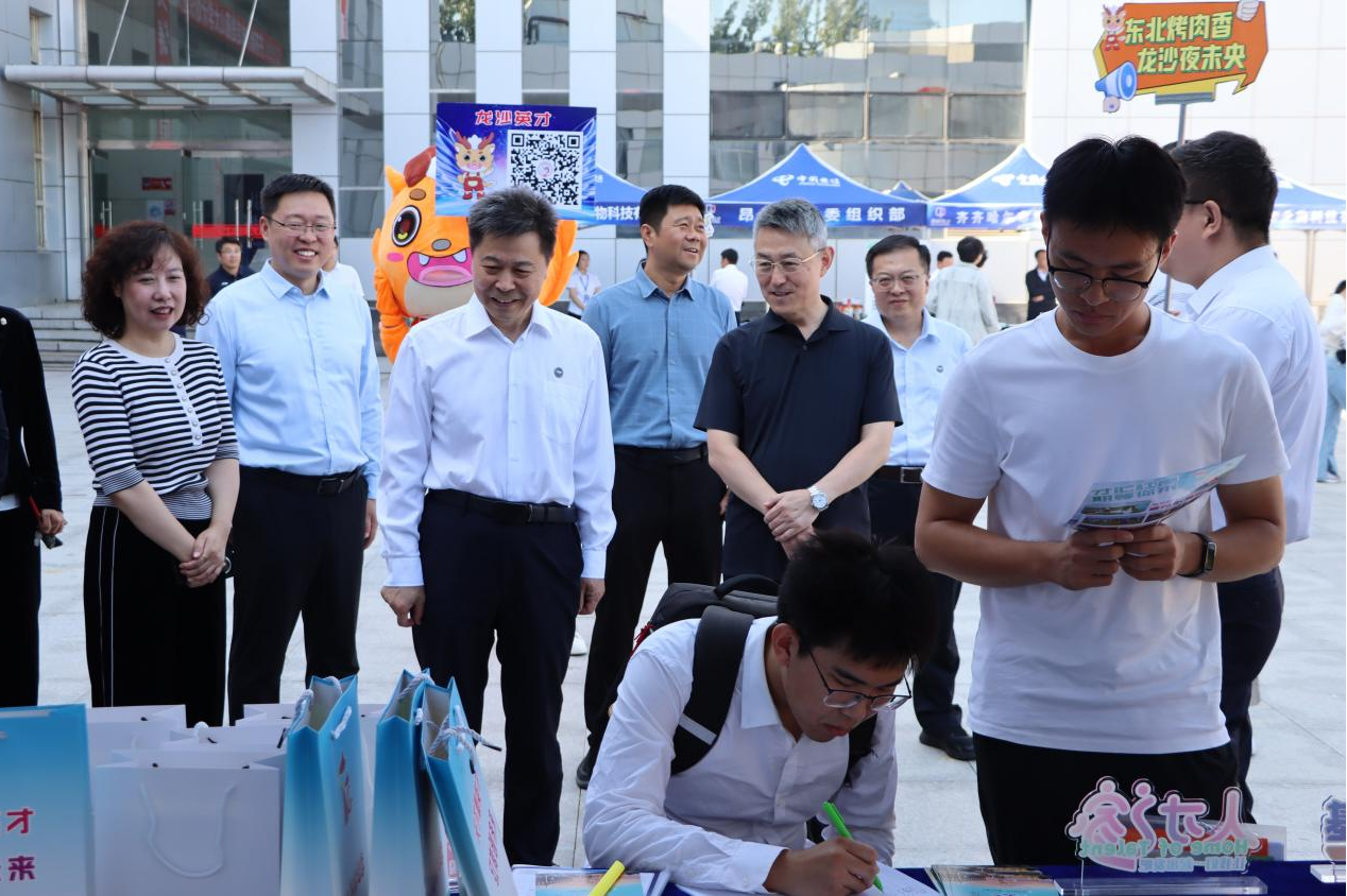 9月25日上午,2025年度“黑龙江人才周”校园引才活动在燕山大学举办。燕山大学副校长王德松,齐齐哈尔市委组织部常务副部长、市委人才办常务副主任李英江出席活动。市委组织部、市人社局、各县(市)区、黑龙江飞鹤乳业有限公司、通用技术齐齐哈尔二机床有限责任公司、齐齐哈尔龙江阜丰生物科技有限公司、齐齐哈尔四达铁路设备有限责任公司等域内重点企业参加活动。
