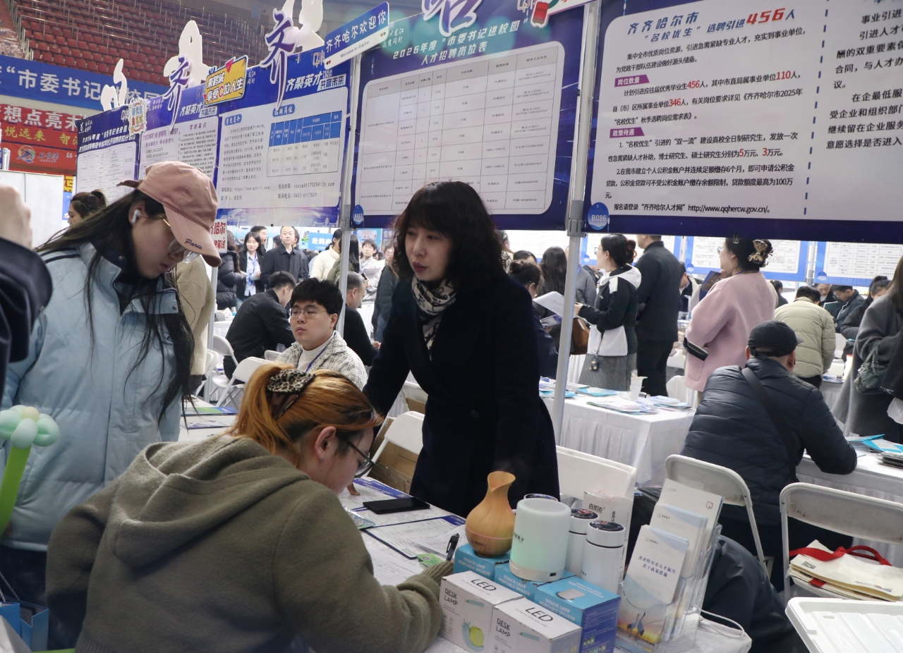 “师范类本科生可以报什么岗位”“老师的职称晋升都有哪些渠道”“咱们市引进教师有什么人才政策”……源于齐齐哈尔与哈尔滨师范大学良好的合作基础与引才经验,同学们对齐齐哈尔的岗位表现了极大的兴趣,在齐齐哈尔展位前一个问题接一个问题仔细咨询。为了让广大学子进一步了解齐齐哈尔的城市文化底蕴和人才发展生态,各用人单位从产业基础到生态环境、从政策待遇到发展渠道、从岗位详情到指导报名,认真为同学们推介讲解,吸引了大批学子咨询报名。